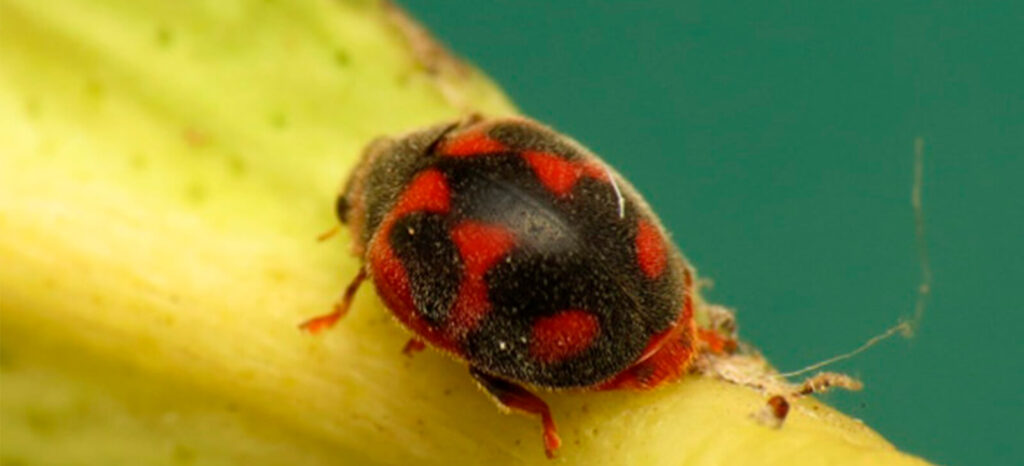 E, por último, a Rodolia cardinalis, originária da Austrália, que também é chamada de joaninha-australiana e que foi introduzida em diversos países para combater as cochonilhas dos pomares.